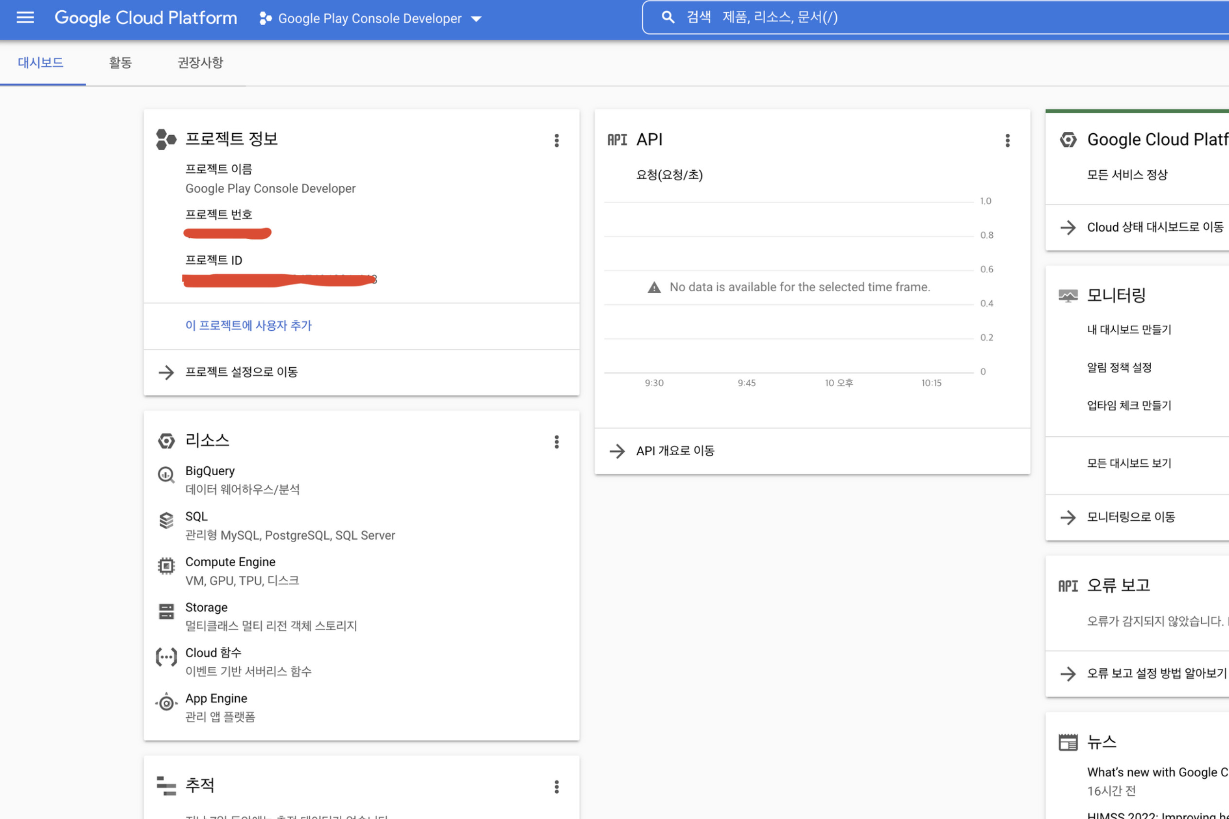 [Google Play] 프로젝트 보기 선택하여 Google Cloud Platform 으로 이동