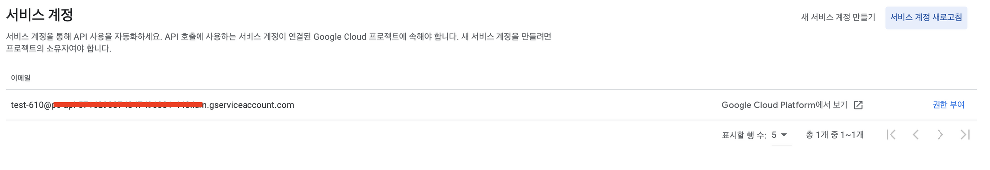 [Google Cloud Platform] 생성된 서비스 계정을 선택