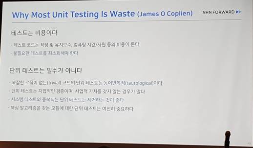 소개 : 프런트엔드 코드는 사용자 환경과 밀접하게 연결되어 있고 복잡한 시각적 요소를 다루기 때문에 테스트를 자동화하기가 어렵습니다. 본 세션에서는 수년간 다양한 방식으로 테스트를 작성해 온 경험을 공유하며, 최신 테스트 도구를 사용해서 실용적으로 프런트엔드 코드를 테스트하는 방법을 설명합니다.
