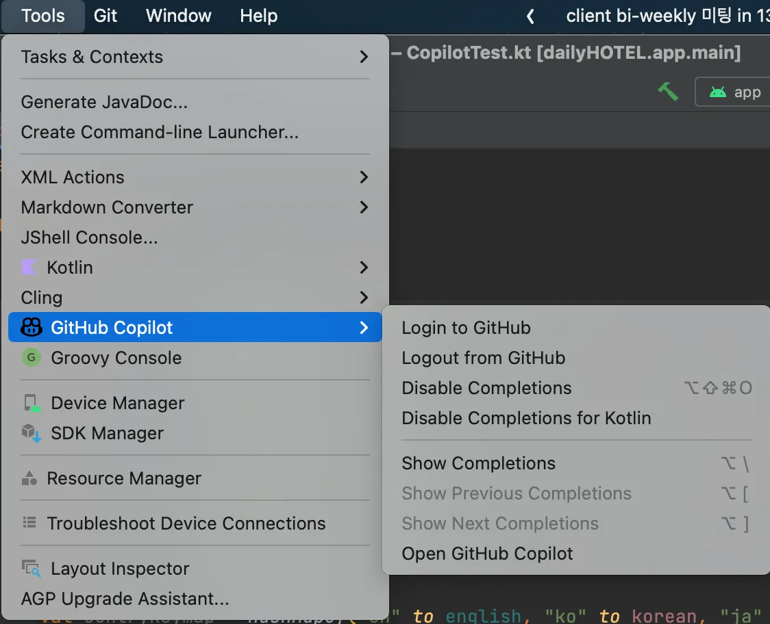 플러그인 사용을 위한 Copilot 로그인